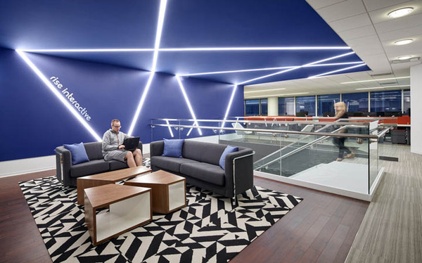 上海裝修公司-康藍(lán)裝飾今天要與大家分享的是,巧妙地利用動(dòng)感光波營(yíng)造辦公環(huán)境的辦公室裝修設(shè)計(jì)。設(shè)計(jì)師為其打造了一個(gè)充滿能量和動(dòng)感活力的辦公室,以繼續(xù)保持不斷增長(zhǎng)的無(wú)限潛力。設(shè)計(jì)師以此為設(shè)計(jì)核心,擴(kuò)建了一個(gè)新空間以補(bǔ)充和強(qiáng)化近期剛完成的改造工程。