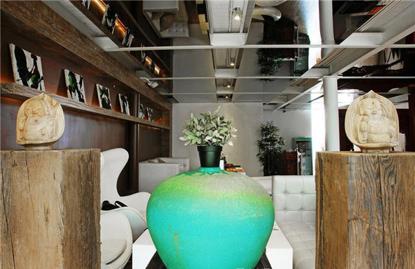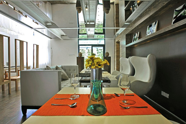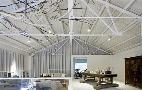 枯樹、鳥籠、白色鵝卵石、明代老家具等這些原生態(tài)的設計元素,在設計師筆下挖掘、整合運用,塑造了一個溫文爾雅的環(huán)境,在人性化上一樓兼做了一個可交流的小餐吧。