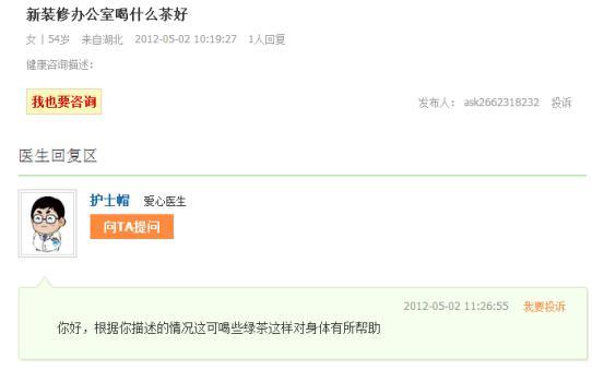 1、愛(ài)心醫(yī)生說(shuō)喝綠茶,綠茶表示很香菇啊!