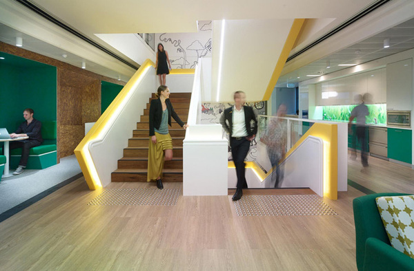 每層都配有舒適的社交空間以契合公司的品牌文化,四個樓層分別以澳大利亞優(yōu)美的環(huán)境象征來命名:景觀公園、美麗的后花園、假日海灘、夏日葡萄園。