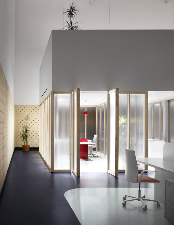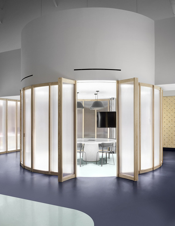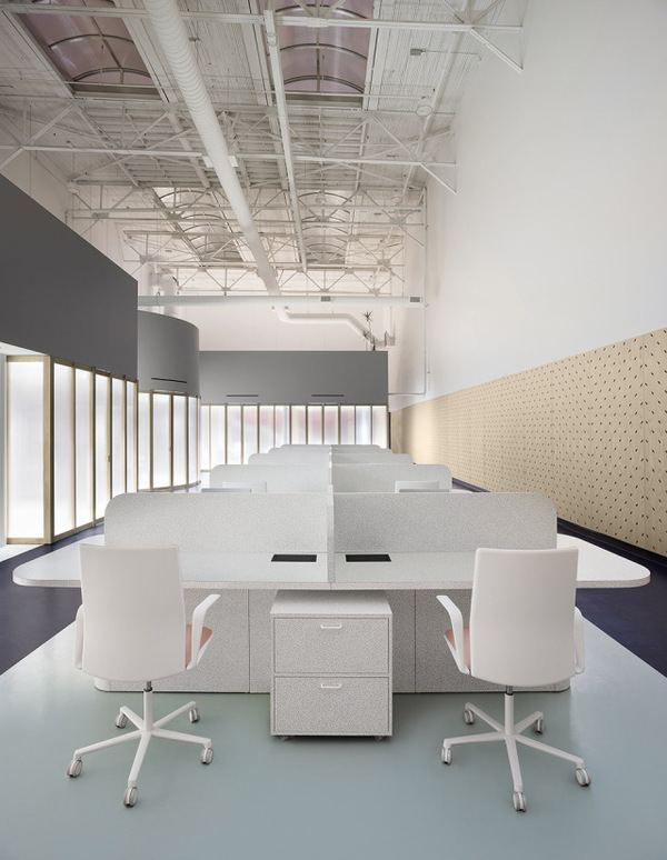 Gruppo Campari對于多倫多辦公室的設計要求十分簡單,即創(chuàng)造一個充分體現(xiàn)公司精神并且可以激發(fā)使用者靈感的空間。Campari標志性的海報有上百年歷史,種類豐富,充滿創(chuàng)意。建筑師從海報和食材中提取顏色、圖案以及形狀,并將它們層層重疊,直到形成一個平衡的三維空間。