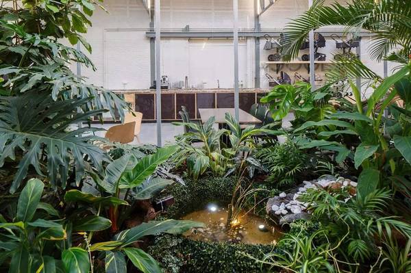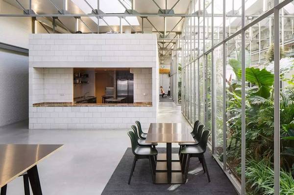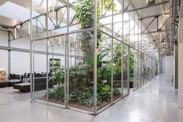 由荷蘭Space Encounters工作室為設(shè)計(jì)和制造人體工程學(xué)童車的Joolz公司,剛剛完成了位于阿姆斯特丹北部的一個(gè)1600㎡的辦公樓改造。這座玻璃屋原來作為舊倉庫,設(shè)計(jì)者首先去除底層室內(nèi)的所有墻體,利用高聳的種滿植物的玻璃屋將整個(gè)空間分成兩個(gè)長廊似的辦公室,玻璃屋一直連到屋頂,與天窗結(jié)合在一起。