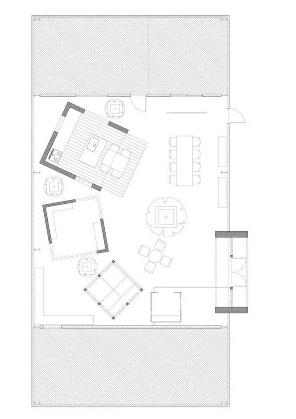 由ALTS Design Office設(shè)計(jì)的位于日本滋賀縣的Omihachiman新工作室,業(yè)主希望可以滿足不同的群體使用,同時(shí)尋找一個(gè)能夠令他們自由談話的工作室。設(shè)計(jì)者為室內(nèi)創(chuàng)建了四種“房子形狀”的位置,通過不同尺度的模塊形狀,適應(yīng)不同人群的社交空間。