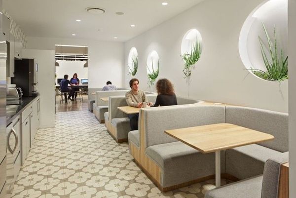 帶有休息室的柜臺(tái)式會(huì)議空間和野餐桌式會(huì)議室。