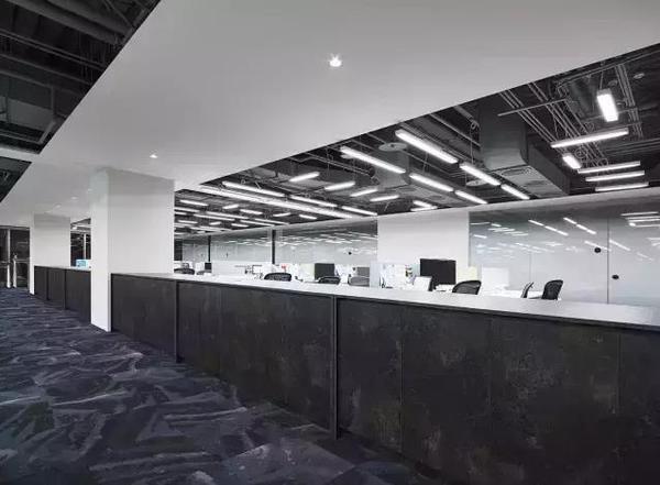 公共辦公區(qū)以黑色系為主體裝修色調(diào),莊重、嚴(yán)正的辦公環(huán)境象征著堅(jiān)毅的目標(biāo)、包含著權(quán)益的決策。白熾燈簡單大氣,統(tǒng)一的布局相同的配置使公司更具凝聚力,偌大的公共辦公空間彰顯公司大氣,同時(shí)也方便人們的交流。