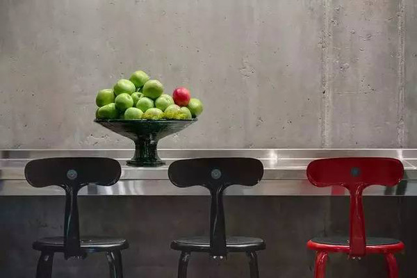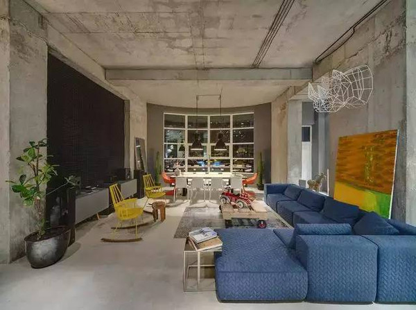 整個空間的墻體和屋頂沒有做處理,保留了原始的味道,大膽的顏色和有創(chuàng)意的家具,是它的亮點,也是設(shè)計的重點,高純度的黃色和藍色的碰撞,為空間增加了時尚感。