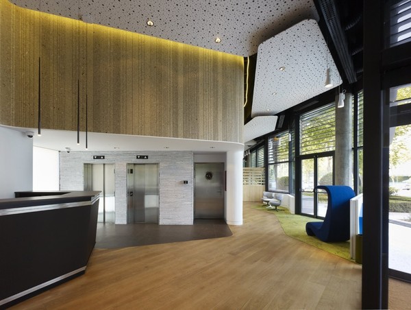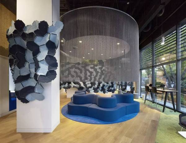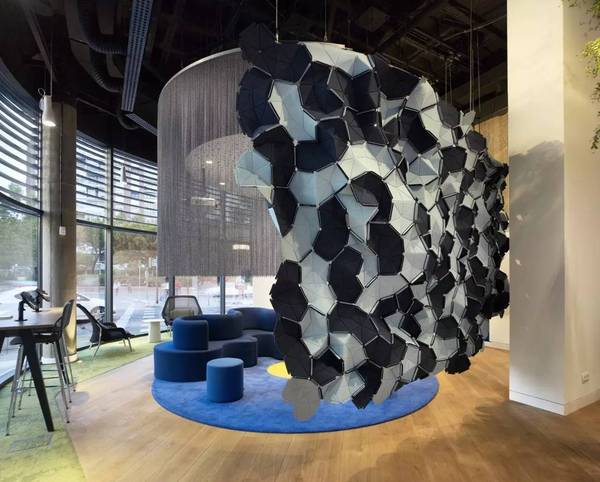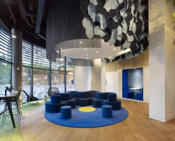 為了滿足多種用途,設(shè)計師在大廳里構(gòu)建了一個多功能的空間,人們可以根據(jù)需要巧妙的改變布局規(guī)劃,而且這個地方無論是從視覺或聲學(xué)角度都具有一定的隱密性,再加上那些可移動的裝修元素,使得人們可以在不破壞天花板或者地板的情況下,在視覺上享受到空間的連續(xù)性。