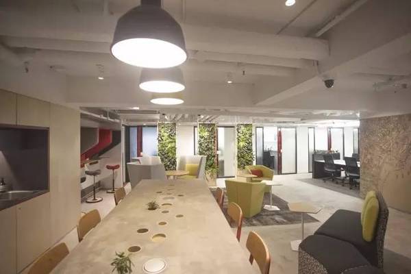 這是一間聯(lián)合辦公室,是一種為降低辦公室租賃成本而進行共享辦公空間的辦公模式,來自不同公司的個人在聯(lián)合辦公空間中共同工作。在這個項目上,設(shè)計師試圖改變?nèi)藗儗ΤR?guī)協(xié)作辦公空間的一貫看法。他們打造出了靈活多變的工作區(qū)域,以滿足協(xié)同辦公的人們所需要的不同工作模式,可以適用于多種辦公類型。為了**限度的挖掘人與人之間交流的欲望,他們還專門設(shè)計了一個用于群聚的咖啡間。考慮到或許有人會需要一些相對獨立隱秘的辦公區(qū),設(shè)計師還在辦公室四周開闊的區(qū)域里,規(guī)劃出了幾間陳設(shè)簡單的小辦公間。