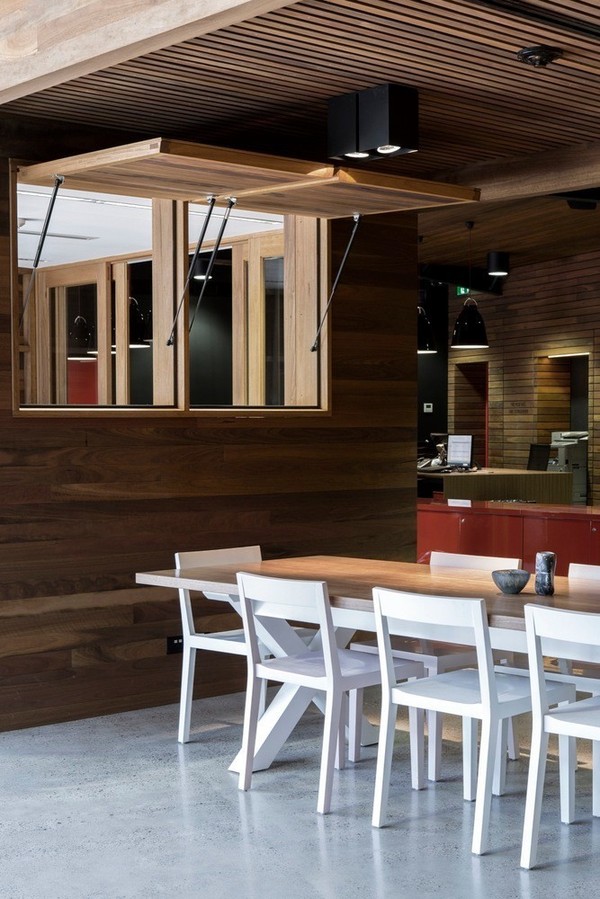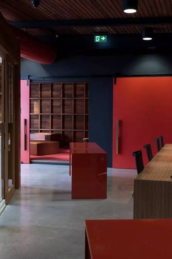 黑色、紅色以及原木色為主要的色調(diào),沉穩(wěn)的色彩搭配加上大量的原木設(shè)計(jì)搭配,展現(xiàn)出溫暖的一面。大量動(dòng)物骨骼的工藝品和圖片分布在辦公室的每個(gè)角落,展示著企業(yè)的行業(yè)文化。