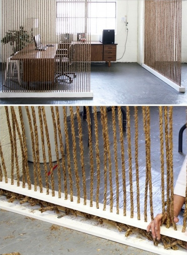 用線繩跟木板,相當(dāng)容易的DIY別致隔斷,在材質(zhì)上追求自然,出來的空間效果也令人印象深刻。
