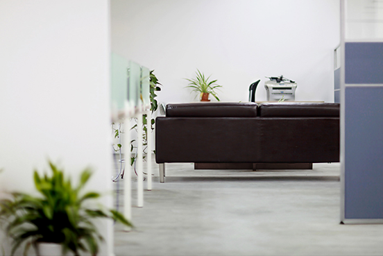 會(huì)客區(qū)的裝修亦是遵循簡(jiǎn)約的辦公室裝修風(fēng)格,真皮沙發(fā)加上茶幾盆栽就構(gòu)成了一副合適的洽談場(chǎng)景,背景和吊頂非常普通,所以設(shè)計(jì)師將心思花在了綠植的裝飾作用上,用以點(diǎn)綴空間是一個(gè)不錯(cuò)的主意。