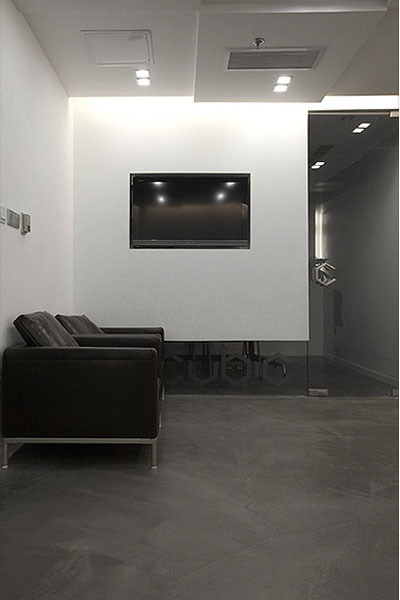會客區(qū)的裝修采用同樣簡潔的風格,不做過多修飾,沙發(fā)座椅、墻面LOGO和一副壁畫。整個辦公室裝修加入了一個立體設(shè)計,在墻面及天花板上都可以看到,能非常有效的營造室內(nèi)空間感。