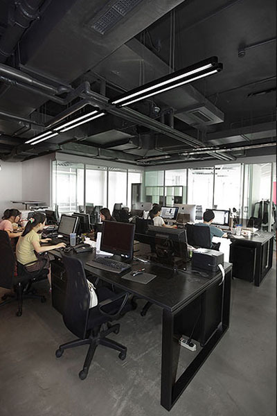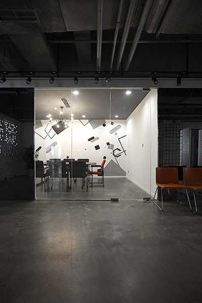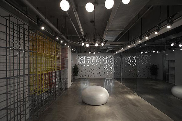 辦公隔斷獨具個性,鏤空的設(shè)計讓視線變得模糊又不至于封閉整個空間;地板仿佛是粗糙的水泥地板,事實上這種樸素的設(shè)計卻是出于裝修風格的要求。