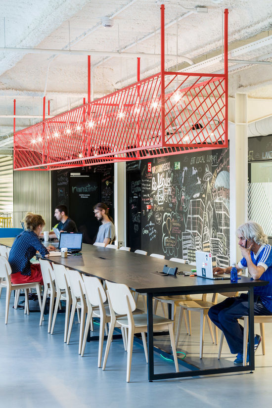 而在 2012 年,Jump Studios 就為 Google Campus 打造過位于倫敦的辦公樓,是一所專門為創(chuàng)業(yè)初期的人提供的聯(lián)合辦公室,不同的創(chuàng)業(yè)公司在同一間辦公樓進(jìn)行辦公,類似于國內(nèi)的 SOHO 3Q。