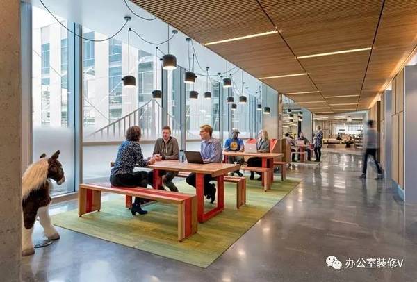 設(shè)計(jì)團(tuán)隊(duì)將舊金山的城市格局與企業(yè)的品牌元素相結(jié)合,以街景式平面布局創(chuàng)建出一條條寬廣的大道,營造出休閑舒適的都市氛圍。