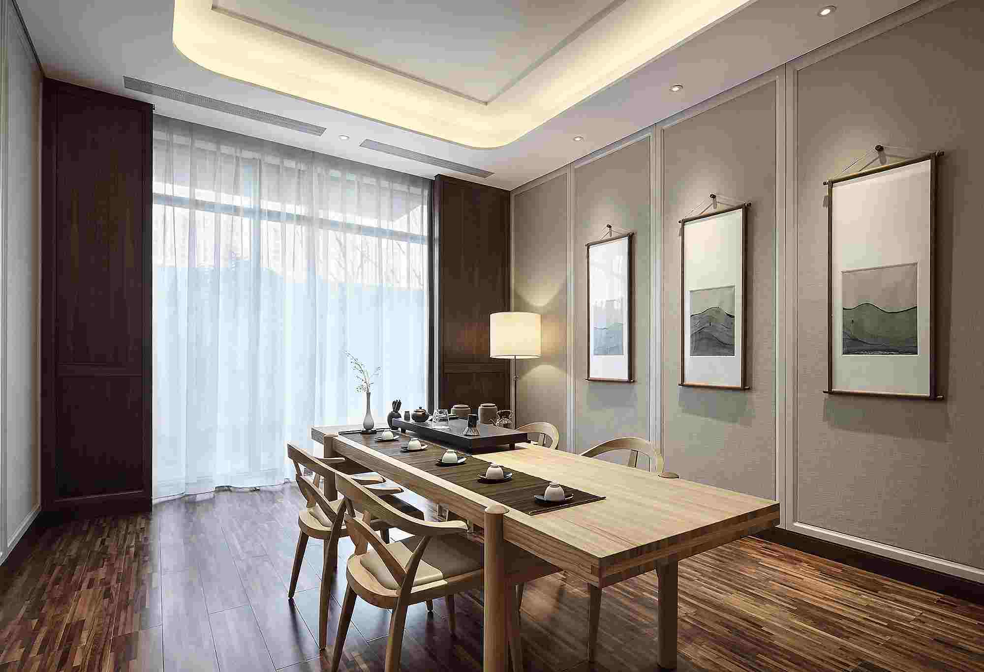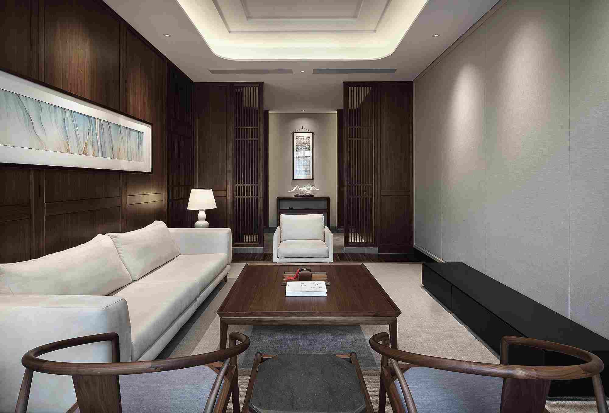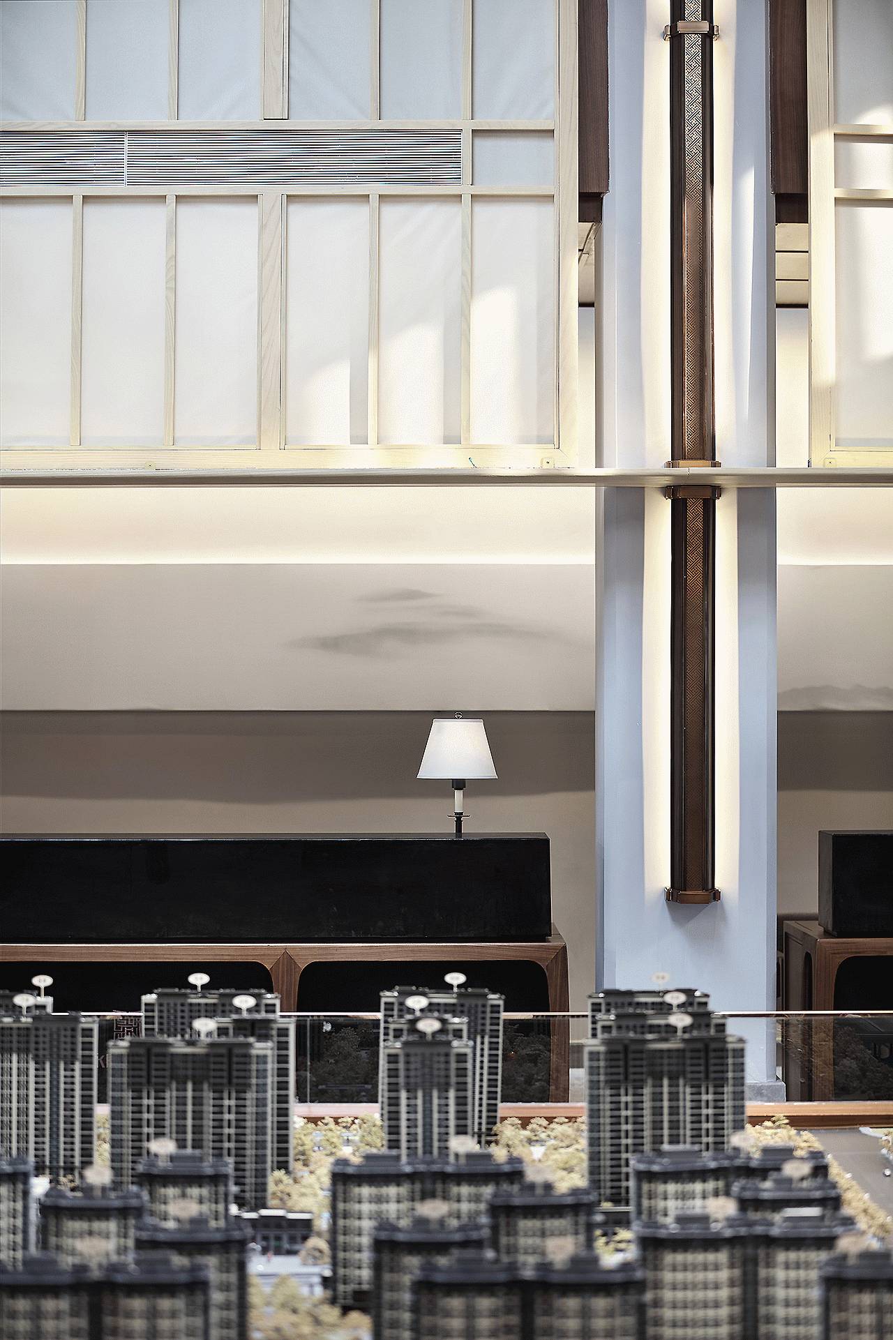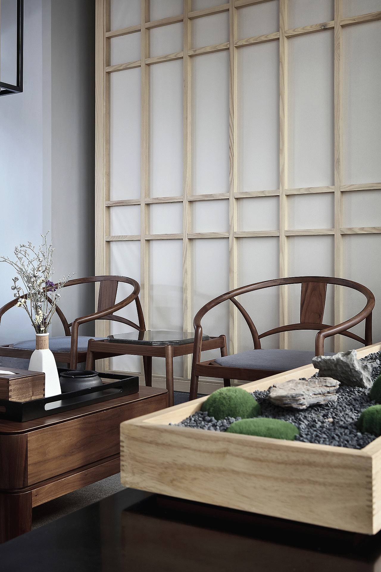 臨窗一側(cè),空間切分成若干會(huì)客區(qū),靜靜懸掛的方燈下,線條舒展的中式明椅明幾與素色沙發(fā)相對(duì)而列,輕輕的訴說(shuō)著什么。