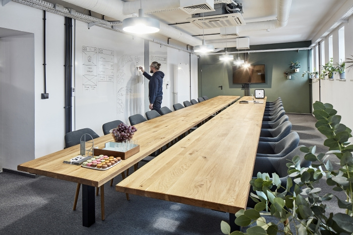 Chilid Hi-End與他的兄弟公司XSolve一起設(shè)計了他們位于波蘭Gliwice的新總部。幾年前,挪威電信公司Telenor進行了一項實驗。他們把大部分的咖啡機都扔掉了,并擴大了他們的自助餐廳。為什么?看看辦公室設(shè)計是否真的對員工的創(chuàng)新和生產(chǎn)力產(chǎn)生了巨大的影響。結(jié)果呢?來自不同部門的員工相互交流,共享信息,合作,為Telenor帶來了2億美元的利潤。受他們啟發(fā),設(shè)計團隊也開始對自己的辦公設(shè)計進行調(diào)查,*終設(shè)計了一個全公司員工都滿意的辦公空間。