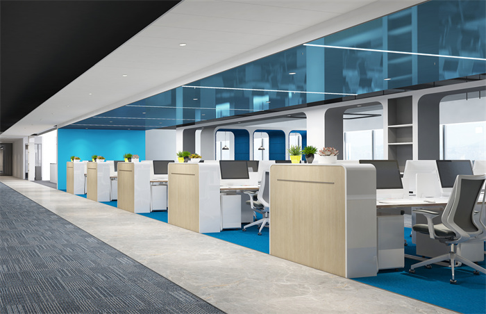 一些工作部門員工之間的隔斷要求不用那么明顯,如果各部門之間員工的獨立度太高,就會形成溝通不暢的問題,反而不利于工作,那么在辦公室裝修設(shè)計時可以采用低一些的屏擋、矮柜,同時又能規(guī)劃辦公場所的大概布局,區(qū)別于各個不同的部門。