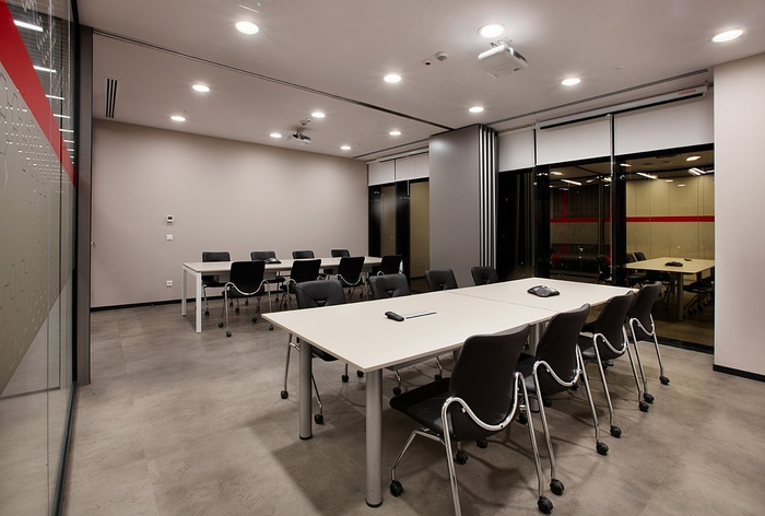 2、其次在上海辦公室設(shè)計(jì)時,會議室常常被傳統(tǒng)的分割成單獨(dú)房間,然而有時候因?yàn)楣镜娜藬?shù)原因無法進(jìn)行統(tǒng)一的大會,但若是規(guī)劃了大型會議室就又會導(dǎo)致會議室數(shù)量減少從而使用不便。針對于這種情況在辦公室裝修時規(guī)劃出一個大會議室,然后使用活動隔斷將其分開,當(dāng)需要多人統(tǒng)一開會時便可以將活動隔斷打開增加會議室面積。這樣不僅節(jié)省空間也能使空間更為靈活。