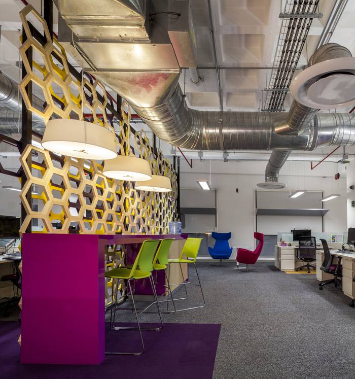 LOFT風(fēng)格辦公區(qū)域很多使用新穎獨(dú)特的隔屏設(shè)計(jì),有利于員工之間的相互溝通,又能避免相互干擾。整個(gè)空間大面積的引入自然光線,并且配置圖書(shū)室與咖啡室,加以主色調(diào)及其穿插于整個(gè)空間,營(yíng)造出了一個(gè)親切、陽(yáng)光、活力的工作氛圍。