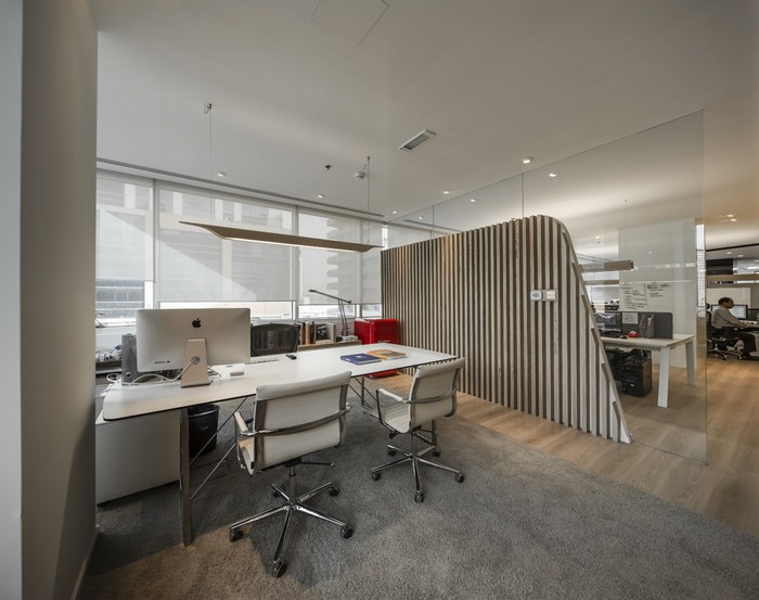 此外,自定義的燈掛在整個(gè)辦公室,可以根據(jù)*終用戶個(gè)性化。設(shè)計(jì)師整合背后隱藏的門廚房。由于沒(méi)有窗戶,它的內(nèi)部被設(shè)計(jì)成一個(gè)小咖啡店,考慮到一個(gè)溫暖的氣氛(在墻上的瓷磚,鵝卵石地板磚,更經(jīng)典的廚房單元,咖啡桌)??傮w而言,這個(gè)項(xiàng)目已經(jīng)取得了一個(gè)正確的平衡空間,材料和功能,考慮到的挑戰(zhàn),其結(jié)果正是客戶所期待的:一個(gè)友好的工作環(huán)境與觸摸的“哇效果”的游客。
