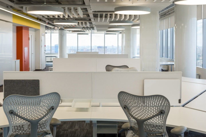 LOFT風(fēng)格新辦公室面積為950平方米,這是一個共有10家設(shè)計公司參與投標(biāo)角逐的辦公空間設(shè)計項目,*終被以“自由和功能性”為設(shè)計定位的領(lǐng)企獲得設(shè)計權(quán)。辦公室分為上下兩層空間,一層空間包括接待臺,健身房和大型會議室,大型會議室要通過健身房空間轉(zhuǎn)化而來,二樓為會議室、辦公區(qū)、員工休息區(qū)和影音娛樂。